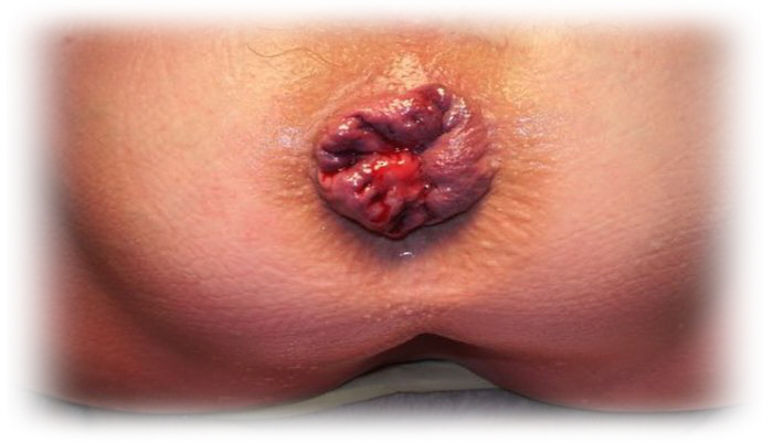 ☑ وجود كتلة لحم لزجة صغيرة حمراء تخرج من فتحة الشرج