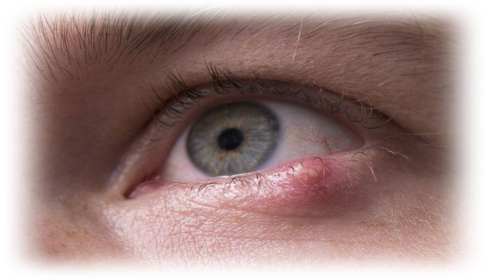 هل هناك منطقة فى جفن العين العلوى أو السفلى بها كتلة متورمة و مؤلمة؟