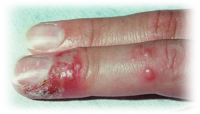 و يظهر هذا النتوء المؤلم عند رأس الإصبع؟