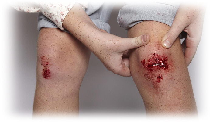 هل عانيت خلال الأسبوع الماضي من سحجة أو جرح قطعي مفتوح فى ركبتك؟