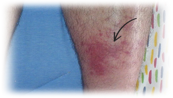 هل هناك منطقة في ساقك يظهر فيها تورم و إحمرار ، و تكون مؤلمة جدا عند لمسها؟