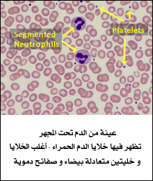 ◊ مرض سرطان الدم (leukemia) أو وجود وَرم يُسبب خللا فى نُخاع العظام (myelodysplastic neoplasm) أو مرض التكاثُر المُفرِط لنُخاع العظام (myeloproliferative neoplasm): قد تتم رؤية خلايا دم بيضاء غير مُكتملة النموْ فى شريحة الدم ، مثل الخلايا البدائيّة (خلايا بلاست blasts). من الطبيعى أن توجد الخلايا البدائيّة (blasts) فى نُخاع العظام حيث يتم إنتاج و نموْ خلايا الدم البيضاء قبل إفرازها فى الدم. إذا تمت رؤية الخلايا البدائيّة (blasts) فى شريحة الدم ، فقد يُشير ذلك إلى الإصابة بمرض خطير فى نُخاع العظام.