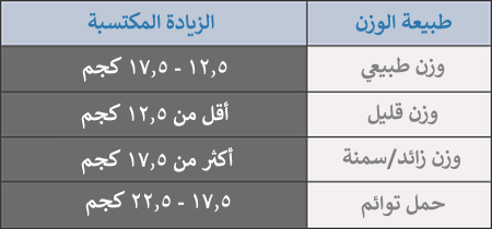 إذا كان وزن المرأة قبل الحمل طبيعي ، فهي تحتاج من 12 إلى 17.5 كيلو جرام زيادة أثناء الحمل ... المزيد