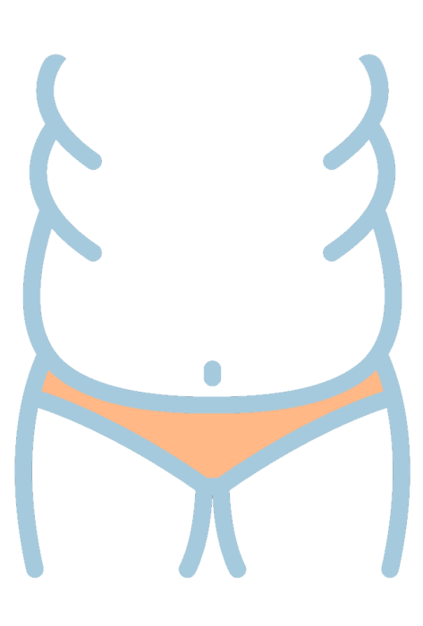 ➁ الشكل الكمثري حيث تتجمع الدهون فيهن في المؤخرة والفخذين ، وقليل في البطن.